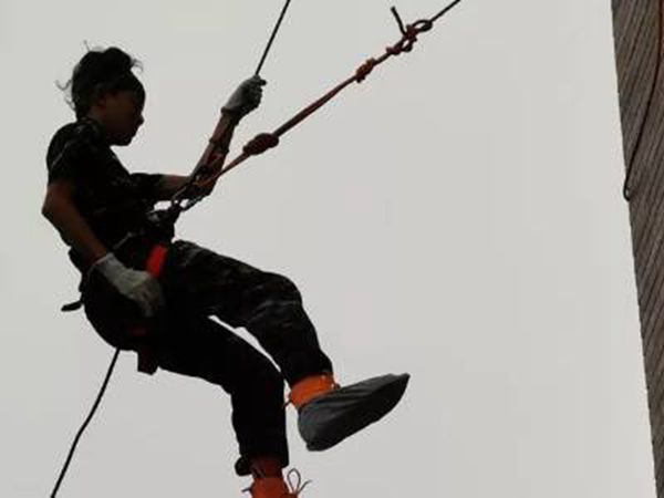 用逃生绳沿着墙面下降