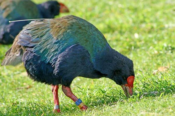 南短翅水鸡又被称为塔卡黑秧鸡,因为乍一看它的全身羽毛多呈现黑色,但是实际上迎着阳光就能看出它的羽毛非常的艳丽,有种五彩斑斓的黑的感觉,比如它们的背部多呈现铜绿色,而身体两侧则多泛有蓝色的金属光泽,不过全身上下最为显眼的还是它们头顶上的鲜红额盾,生长于鸟喙的根部。
