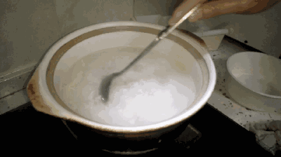 4、不停搅拌:米刚下锅的时候搅动几下,等小火熬煮30分钟后揭开盖,然后不停的搅动,一直持续10分钟左右,至呈稠状即可。这样做的好处很多,不仅能防止出现糊锅的情况,还能让米粒更加的饱满,米粥更加粘稠。